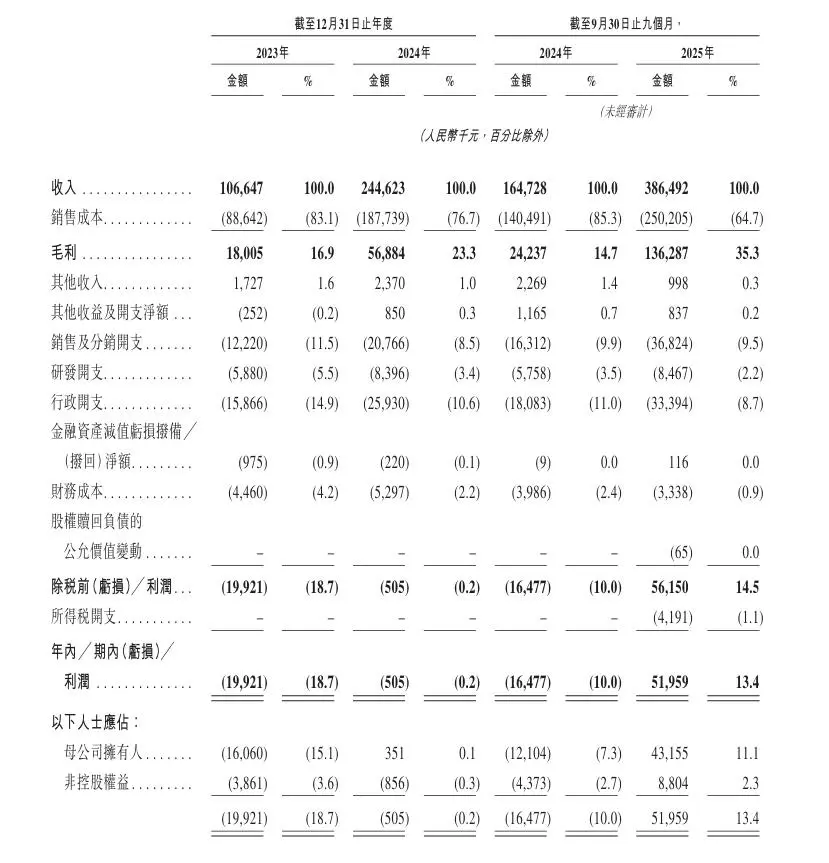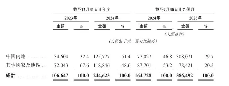 目前,桑尼森迪是内外销同步发展,且内销占比逐步提升。2023年、2024年、2025年前9个月,该公司在中国内地实现收入分别为3460.4万元、1.26亿元、3.08亿元,分别占当期总营收的32.4%、51.4%、79.7%;在其他国家及地区实现收入分别为7204.3万元、1.19亿元、7842.1万元,分别占当期总营收的67.6%、48.6%、20.3%。