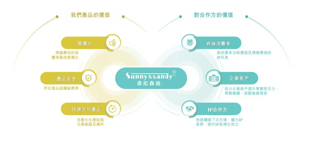 依托自主专利技术与行业领先的智能制造能力,桑尼森迪推出IP玩具及IP玩具解决方案(“IP玩具+”)两大核心业务,提供极具质价比的优质产品。根据弗若斯特沙利文的资料,该企业已在IP玩具和IP解决方案行业建立了领先地位,按截至2025年9月30日止 九个月的总销量计,已成为该等行业的第二大中国企业。